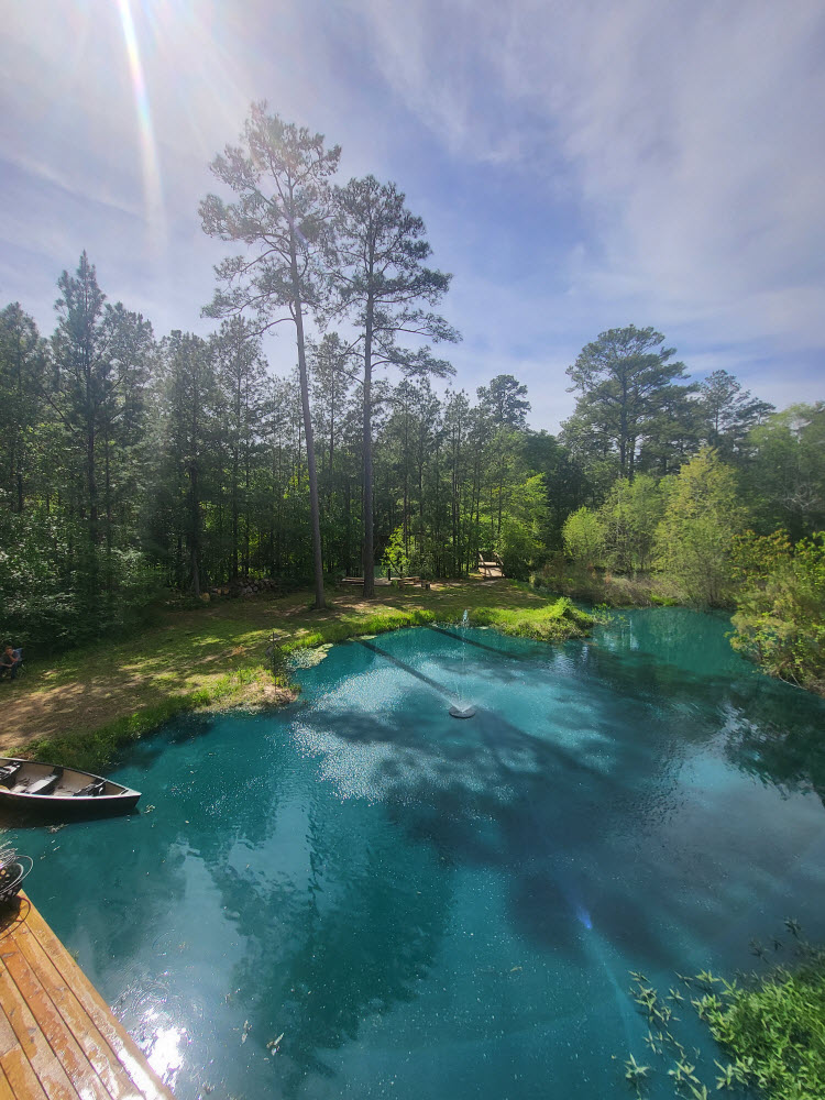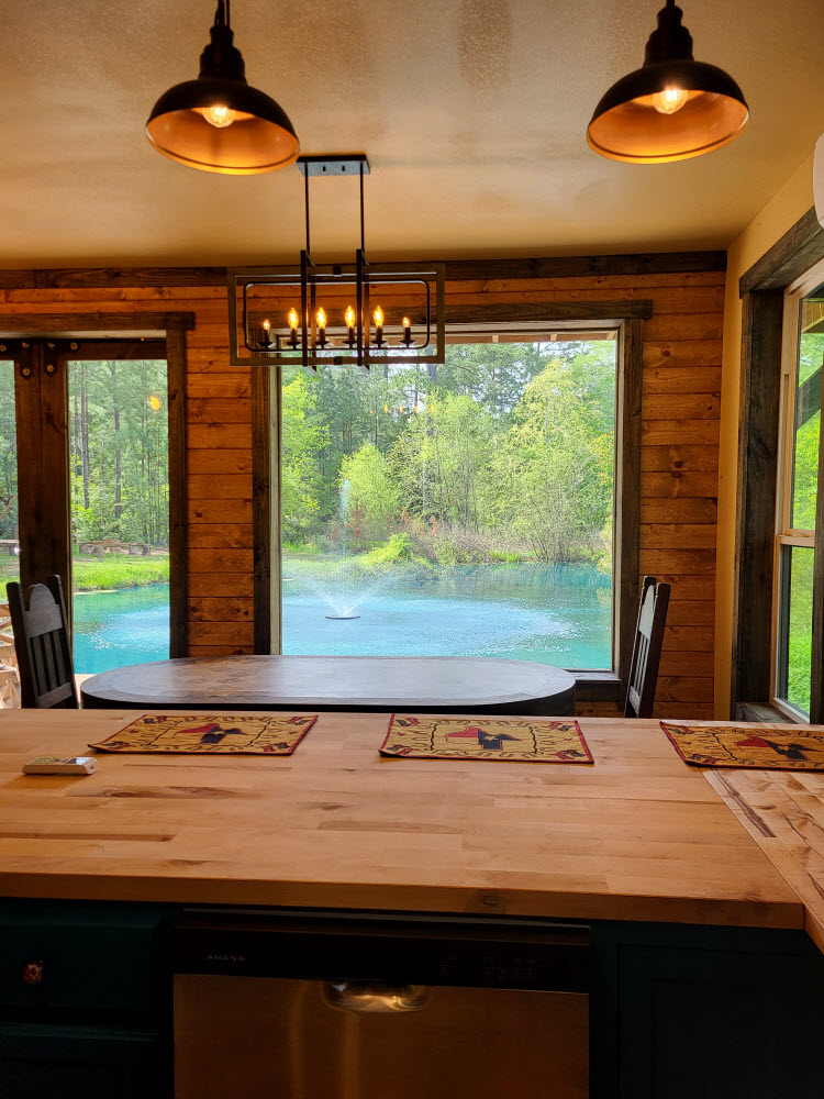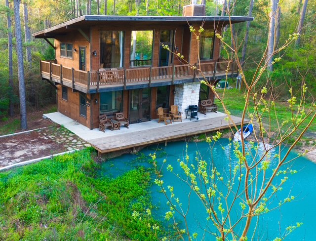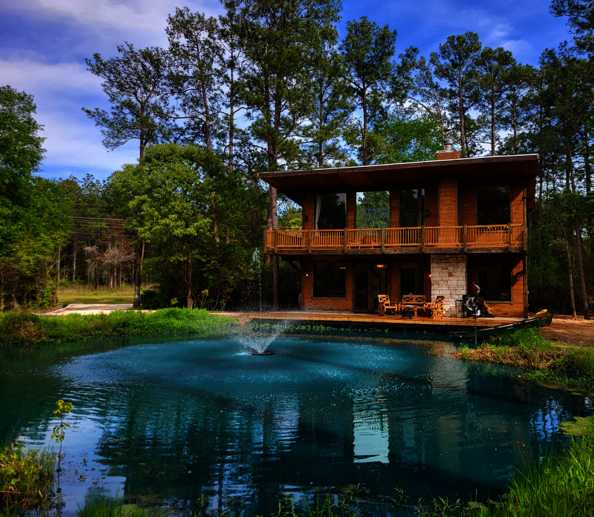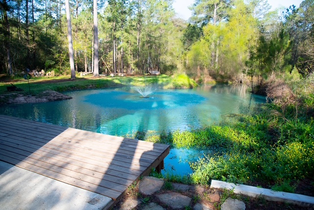 In the Magical Forest embrace fishing off your own private deck, canoeing or kayaking amongst gigantic pine trees exploring the ponds unique features like turtles ducks and other wildlife! Enjoy a swim in a unique rock formed swimming pool with a waterslide, waterfall, and a kid friendly zip line for some real adventure! BBQ available, beautiful sunsets with a gorgeous water fountain on site. World famous Texas Renaissance Festival just 8 min away! This setting makes for a perfect event venue!